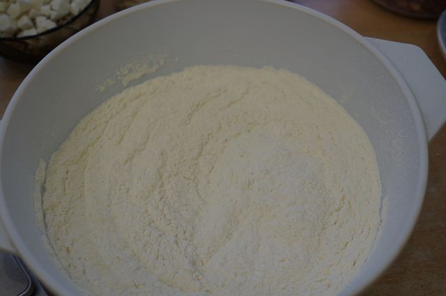 Смешать муку, соль, пекарский порошок, просеять.