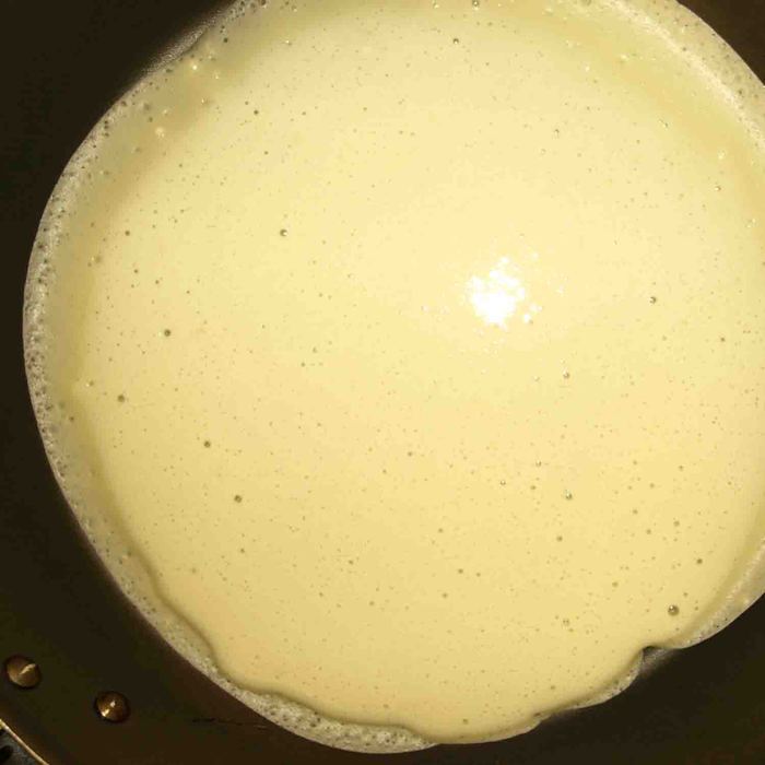 Выпекаем блины на раскаленной сковороде. Перед первым блином, который не комом))) можно сковороду смазать сливочным маслом.