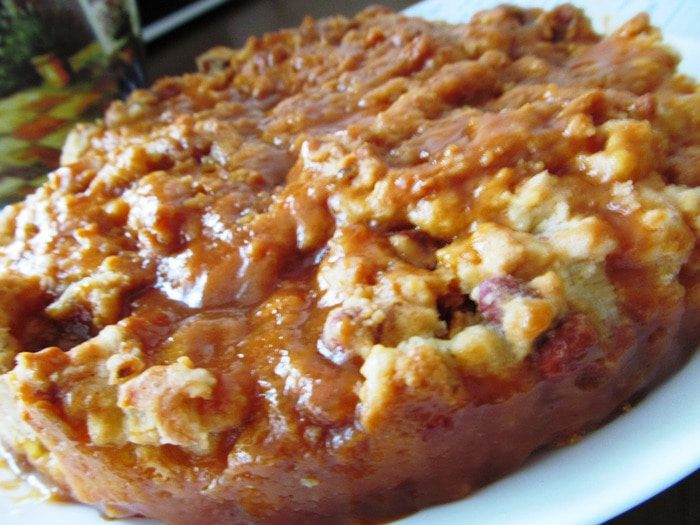 За 5 минут до готовности пирога в сотейник высыпаем сахар, НЕ ПЕРЕМЕШИВАЕМ, ждем пока он превратиться в карамель. Будьте внимательны, следите за карамелью. Затем добавляем сливочное масло и ТЕПЛЫЕ сливки. Варим несколько минут на среднем огне до полного соединения карамели со сливками и маслом.