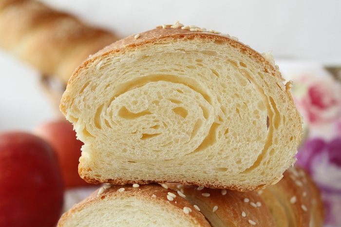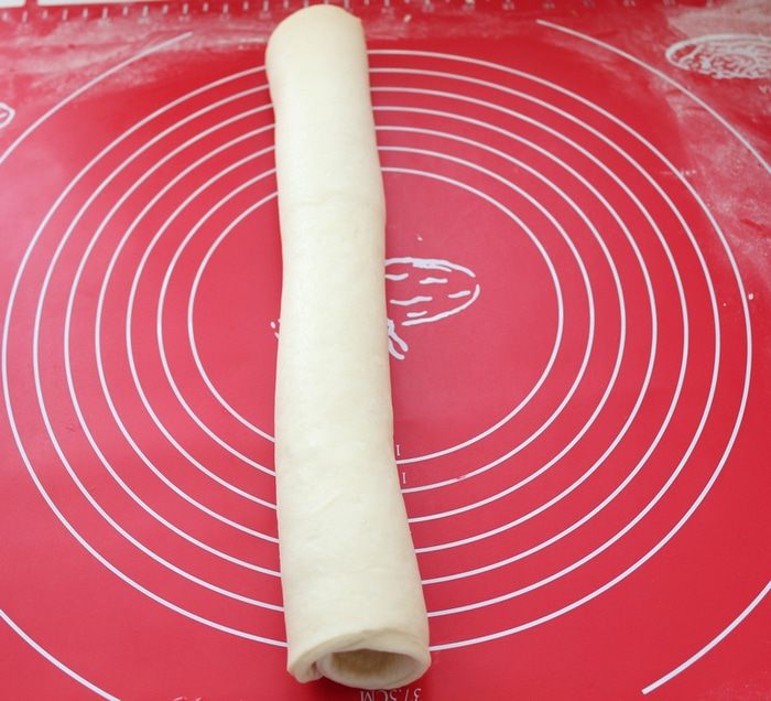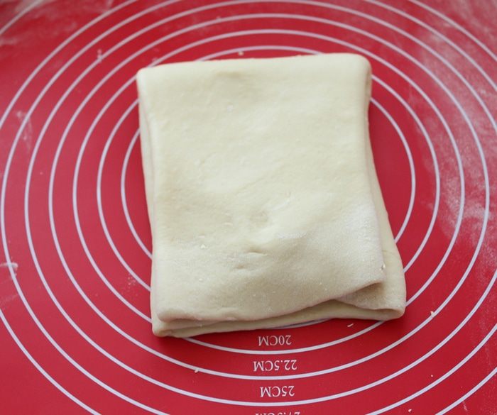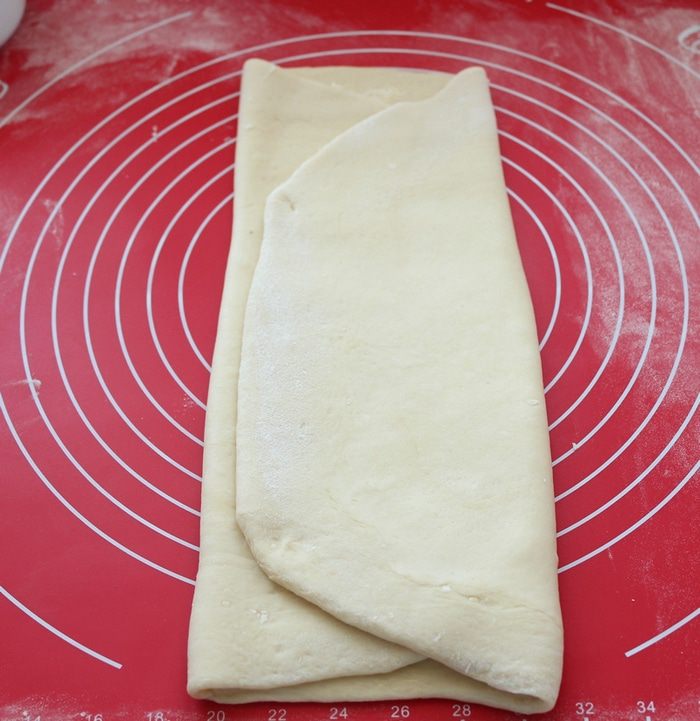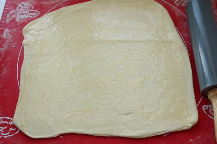 Каждую часть раскатать в прямоугольник. Смазать растопленным маслом.