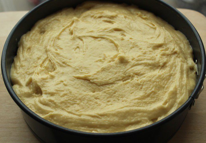 На яблоки выложить оставшееся тесто.