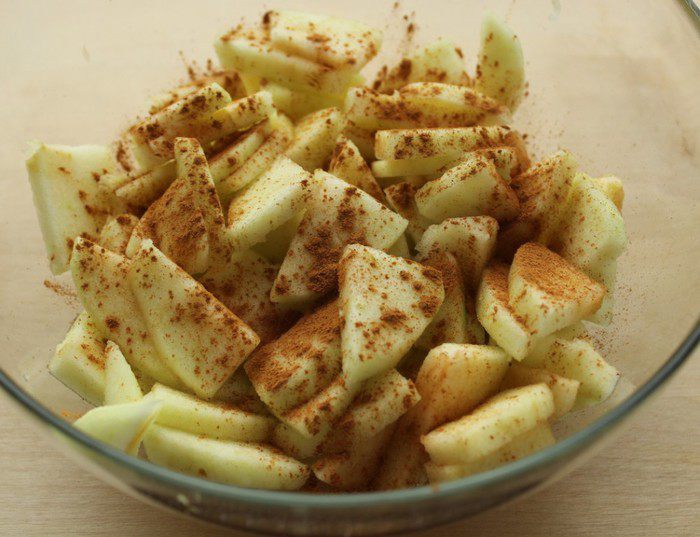 Ровным слоем выложить яблочную начинку...