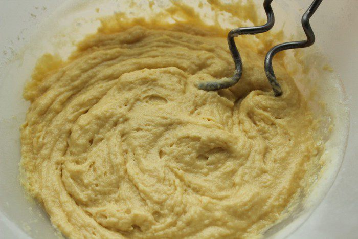 Замесить тесто. Я это делаю при помощи миксера.