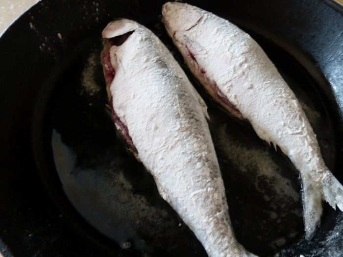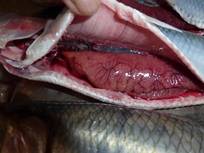 Сельдь очистить, промыть, брюшко аккуратно разрезать и удалить жабры и внутренности, не повредив икру. Еще раз промыть уже выпотрошенную рыбу и посолить снаружи и внутри. Когда я жарю селедку, то никогда не удаляю плавники и хвосты, т.к. люблю потом похрустеть этими, казалось бы не съедобными, составляющими рыбы.