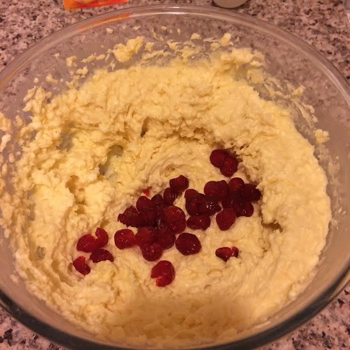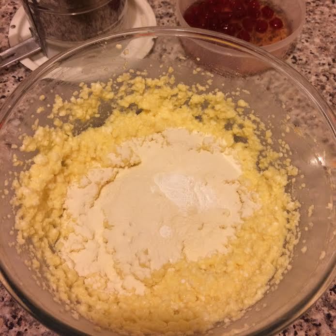 Добавить по одному яйца и хорошо взбить. Просеять муку с разрыхлителем и солью. Начать постепенно добавлять муку.