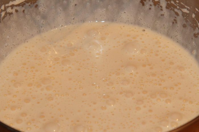 Половину молока ставим в кастрюльке закипать, 1 столовую ложку порошка пудинга отправляем в чашку и постепено добавляем к нему вторую половину молока, постоянно помешивая. Размешиваем, чтобы не было комочков. Затем тонкой струйкой вливаем в кипящее молоко, убавляем огонь и постоянно помешивая готовим в течение минуты. В принципе, это процедура готовки заварного крема, так что можно просто приготовить заварной крем. Оставляем полностью остыть, не забывая периодически помешивать чтобы не образовалась корочка. Крем полностью остыл. Добавляем размягченное сливочное масло и сахар, взбиваем.