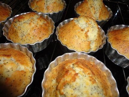 Муку соединить с крахмалом , солью, разрыхлителем, маком (или изюмом). Все перемешать и соединить с остальными ингредиентами. Хорошо перемешать ложкой.