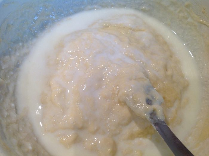 Помешивая ввести молоко и оставшуюся муку.