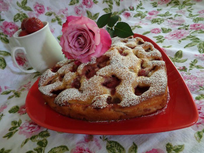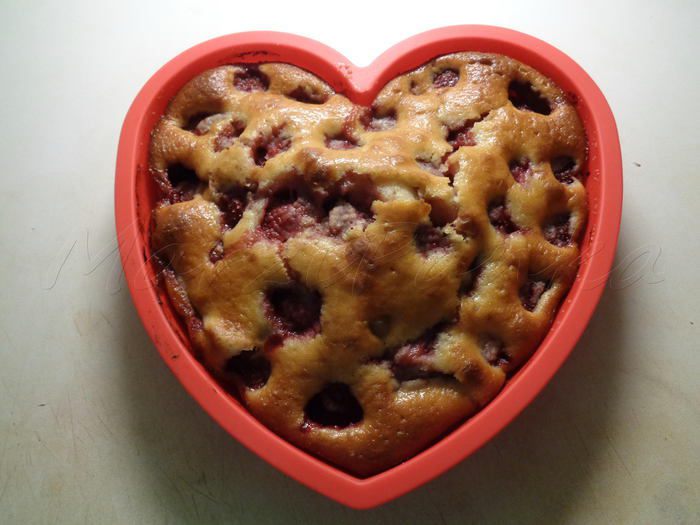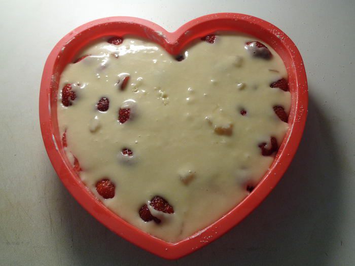 Сверху выложить оставшуюся часть теста, распределив по всей клубнике лопаткой.