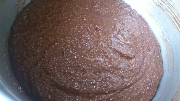 Добавить в смесь шоколад, муку, корицу и настойку.