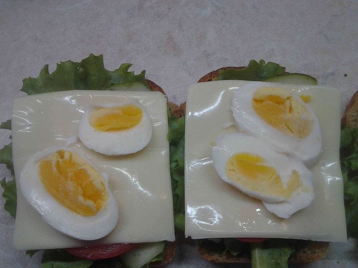 Сверху положить кусочек сыра и сверху добавить яйца.