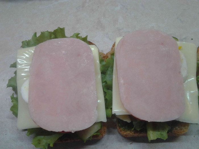 Все это прикрыть ломтиком ветчины.
