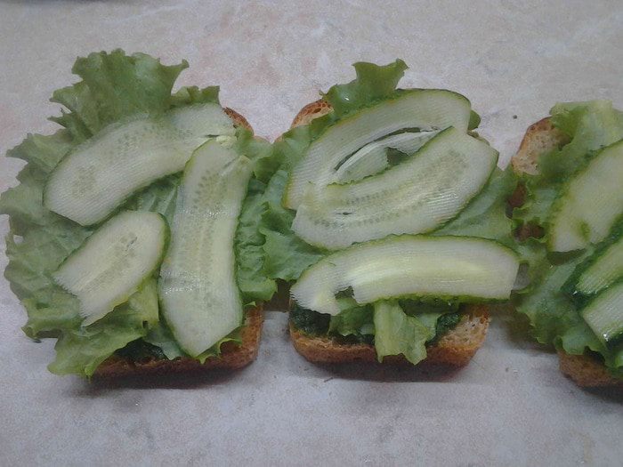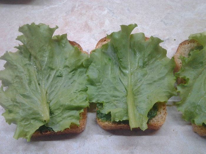 Сверху положить лист салата.