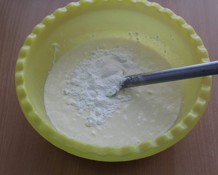 Всыпать кукурузный крахмал и ванильный сахар.