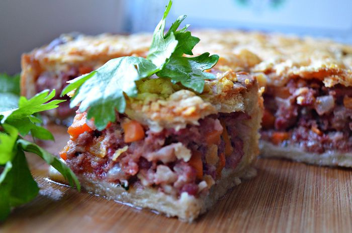 Получился очень наваристый бульон, часть которого я использовала для приготовления начинки для пирога, остальная пошла на супчик. Можно также использовать и любой другой бульон по вашему вкусу (куриный, овощной).