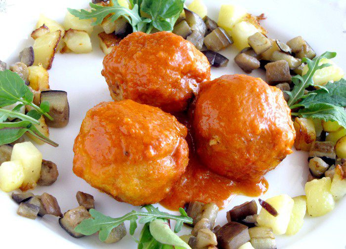Мясные шарики в томатно-апельсиновом соусе с гарниром