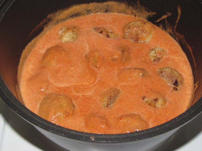 Соединить шарики с соусом и томить на медленном огне под крышкой 20 минут.
