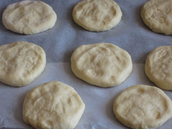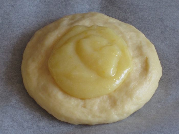 В центре каждой лепёшки сделать небольшие углубления и заполнить их заварным кремом.