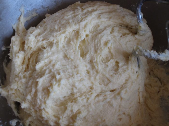 Добавить творог,молоко,растительное масло,яйцо и хорошо перемешать миксером с насадкой для теста до получения однородного теста.