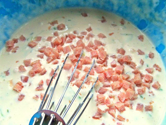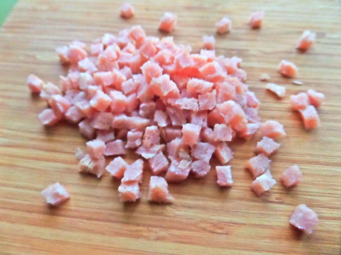 Ветчину измельчить.