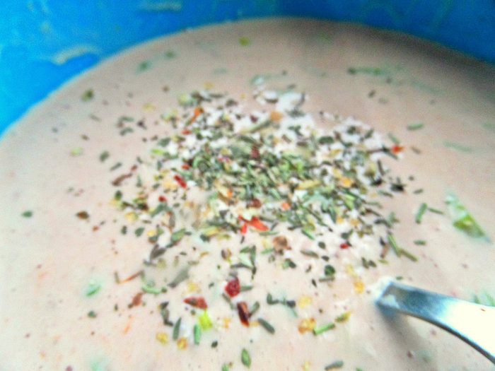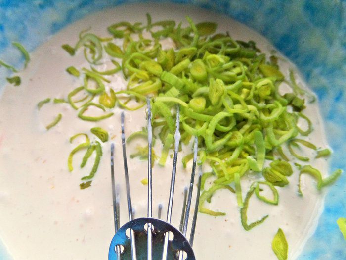 Перемешать лопаткой или ложкой.