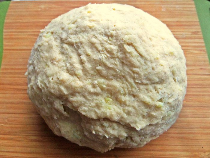Затем руками обмять немного липкое тесто.