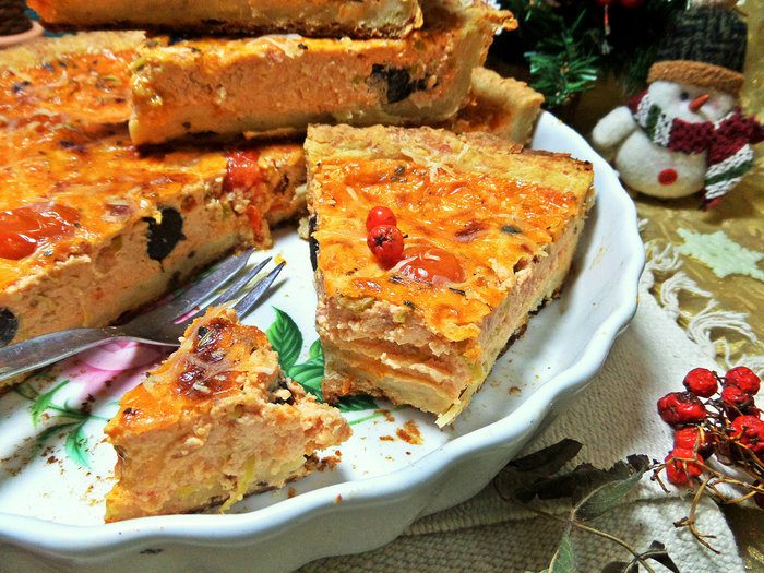 Когда хочется несладкой выпечки, такой киш будет сытным, пикантным и ароматным дополнением к чаепитию с друзьями. Готовится из доступных продуктов. Начинку можно менять. Хорош и в холодном, и в теплом виде.