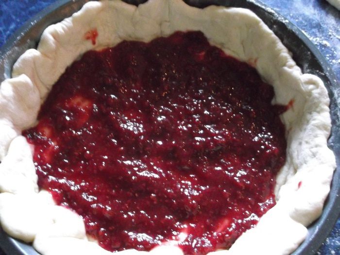 Меньшую часть раскатать и выложить поверх джема, защипляя края. Убрать в теплое место еще на 1 час.