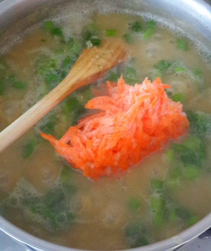 Морковку трем на терке и тоже в суп. Я взяла мороженную. Нужно очищать запасы в морозилке так как новый сезон скоро и молоденькая морковка будет. Моя подруга этот суп варит но делает зажарку на сковородке как для обычных супов. Но мне не нравиться ее вариант. Хотя каждый решит сам для себя сам.