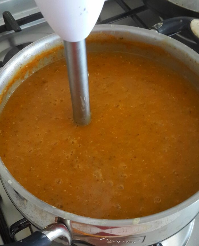 Когда все овощи сварились и нам все нравиться...берем блендер и превращаем наш суп в пюре