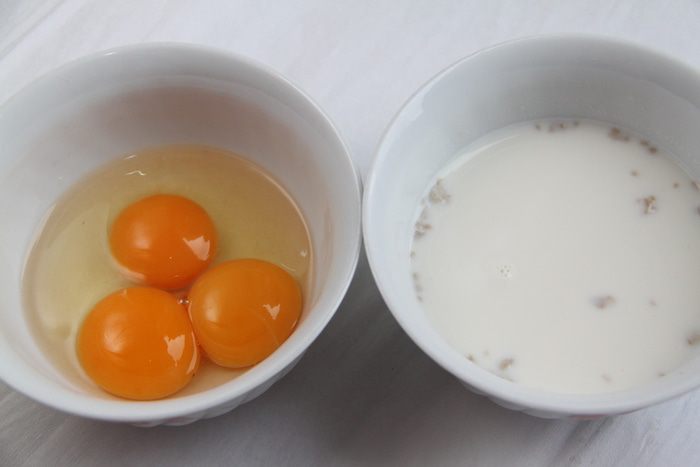 В тёплом молоке растворить свежие дрожжи. Приготовить яйца: отделить желтки от белков.
