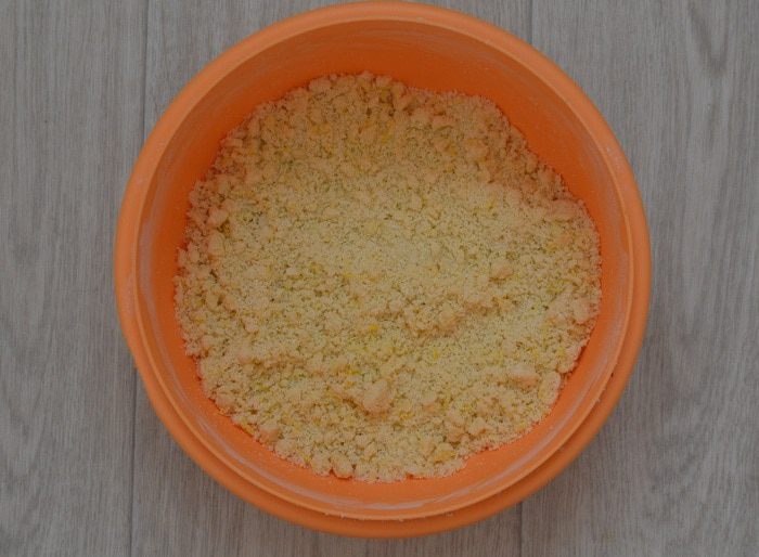 Потом посыпать оставшейся крошкой.