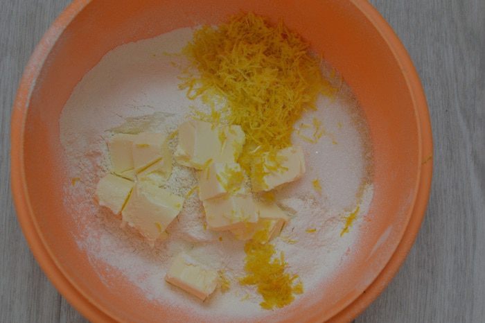 Масло сливочное «Домик в деревне» нарезать на кусочки, добавить в муку и быстро перетереть руками в крошку.