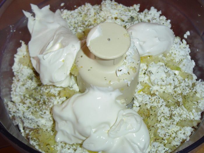 Творог помещаем в чашу блендера, добавляем соль, лимонный перец, прованские травы, измельченный чеснок, сметану и взбиваем до однородной пышной массы.