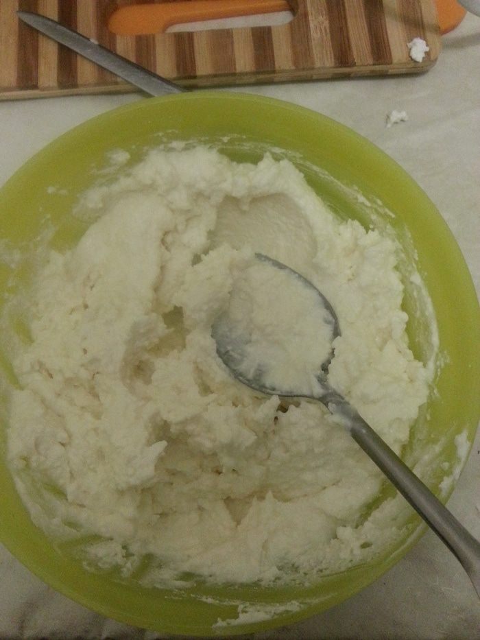Измельчаем в чаше блендера адыгейский сыр, творог и йогурт до пастообразного состояния.