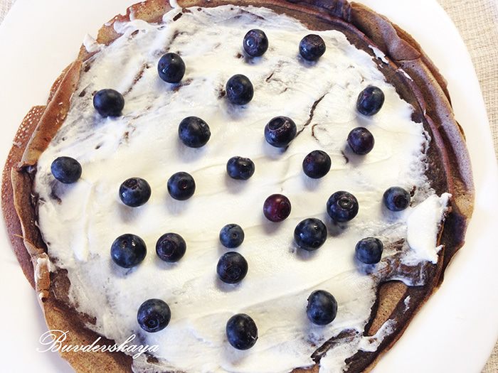 3. Разогрейте сковороду, налейте на нее 1 столовую ложку оливкового масла. В центр сковороды налейте половником тесто и дайте ему растечься по сковороде, наклоняя ее. Когда края блина начнут подсыхать и коричневеть, подденьте блин с краев лопаткой, а затем просуньте лопатку под середину блина и аккуратно переверните его. Готовить еще секунд 30, затем снять блин со сковороды и переложить на тарелку. Выпекайте таким образом все блины, не смазывая сковороду больше маслом !