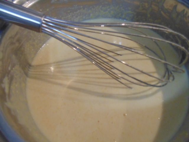 ...влить молоко, размешать, добавить муку, тщательно перемешать. Оставить отдохнуть на 40 минут. Добавить растительное масло.