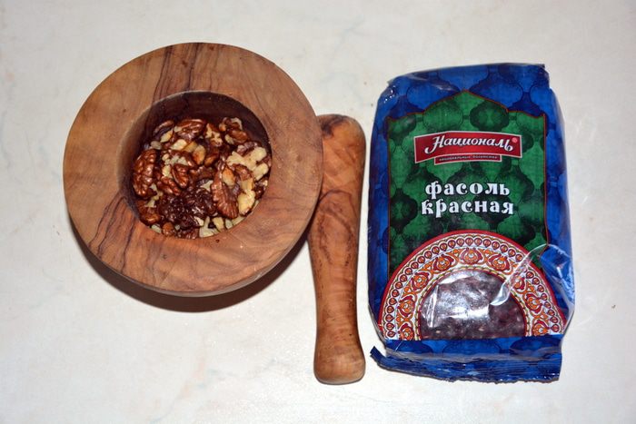 Добавить орехи к фасолевой массе, перемешать.