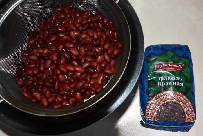 Фасоль замочить в воде на ночь.