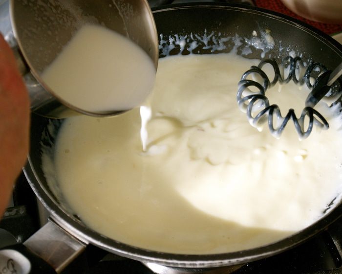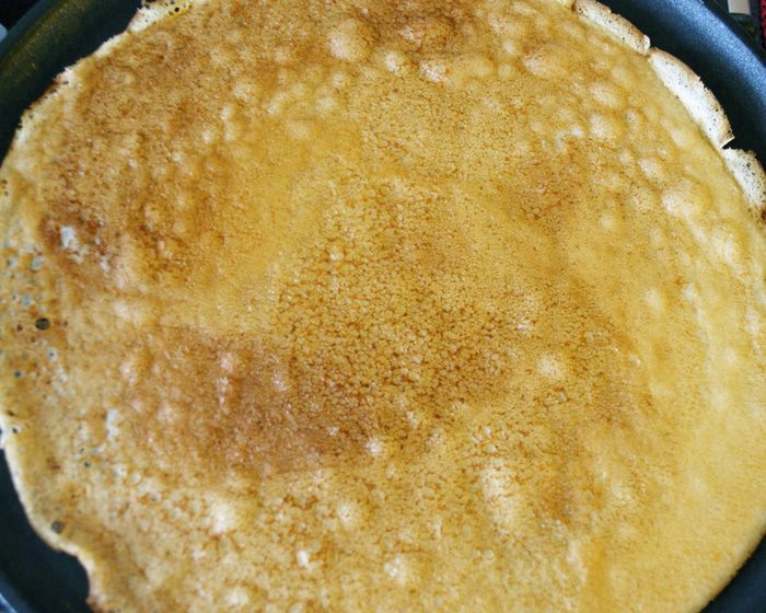 Желтки растереть с сахаром и с солью, постепенно размешать с молоком, добавить растопленное сливочное масло. Влить полученную массу в просеянную муку, перемешать. Отдельно взбить белки в стойкую пену. Ввести белки в общую массу и аккуратно перемешать.
