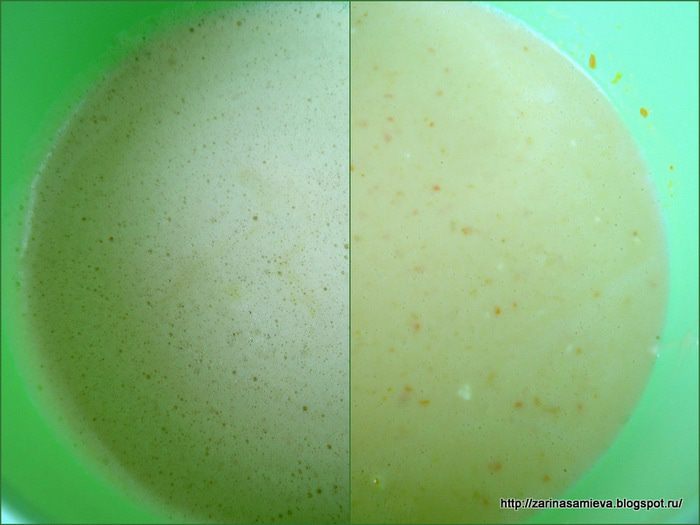 В другой чаше смешать молоко с тыквенным пюре, добавить цедру, соль, соду и апельсиновый ликер. Все перемешать.