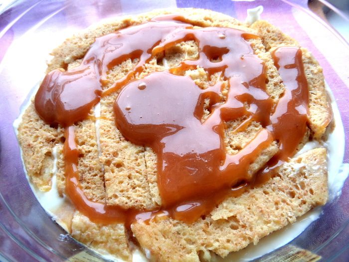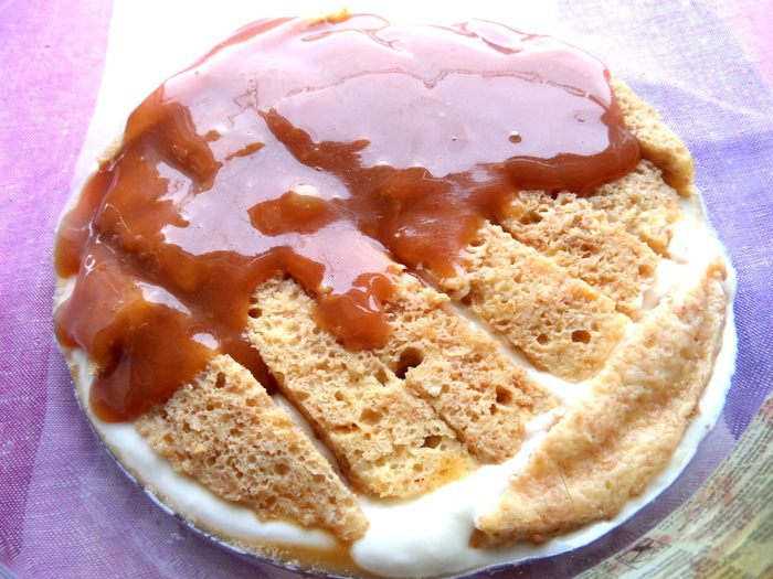 Так как тирамису-калорийный десерт...,хотелось привнести в него хоть частичку полезного и безвредного! Насмотревшись,как девочки добавляют и заменяют много чего в тирамису,я тоже решила заменить банальное печенье савоярди (но Вы можете и его взять!) на быстрый творожный биквитик без запекания в духовке...Так и собрался сборный рецепт,с которым я напоследок и участвую в конкурсе))) И опять же без яиц,но с шикарной карамельной прослойкой,которая играет здесь очень большую роль во вкусе!