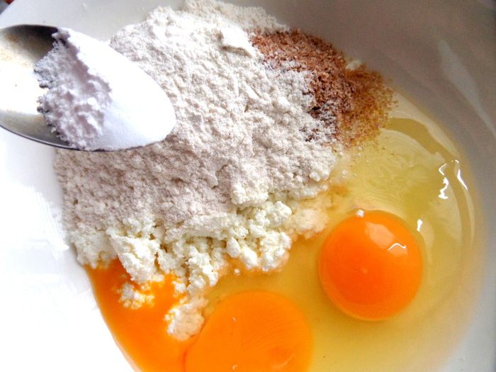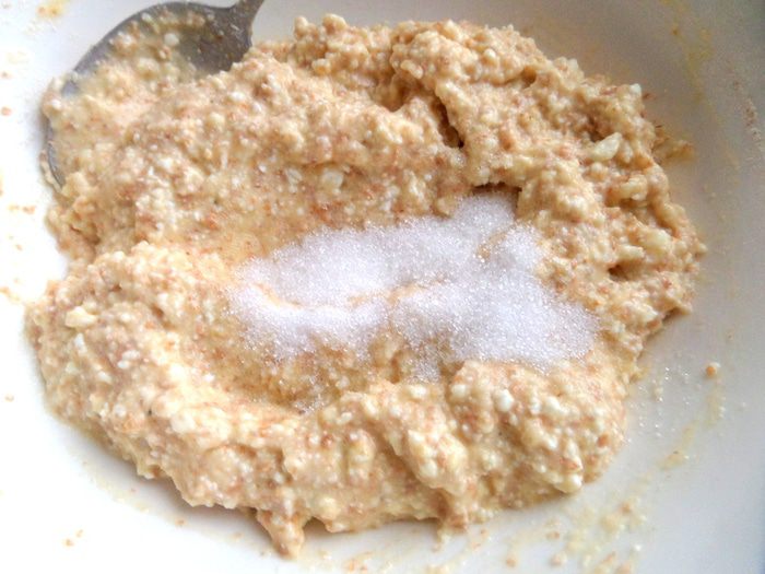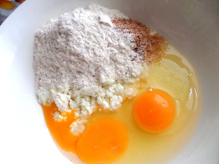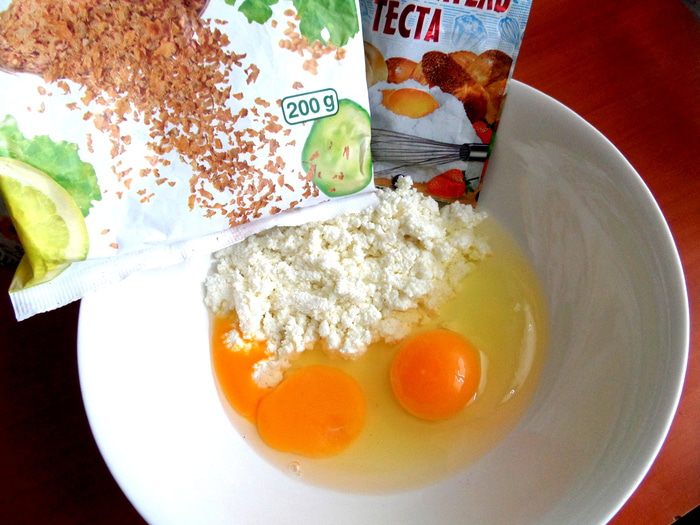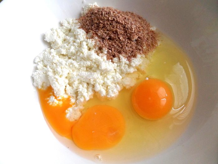Смешаем яйца,творог мягкий,отруби (5 г-это столовая ложка без верха)...