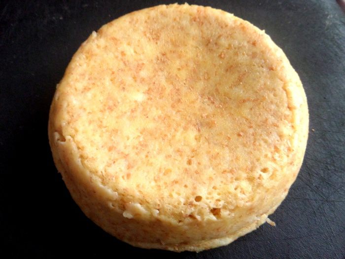Выпекаем в микроволновке 5 минут при максимальной мощности (у меня 750 Вт). Тесто сильно поднимается,даже поднимает крышку,поэтому рекомендую на пятой минуте убрать крышку совсем,тогда бисквит получится с более ровной поверхностью.