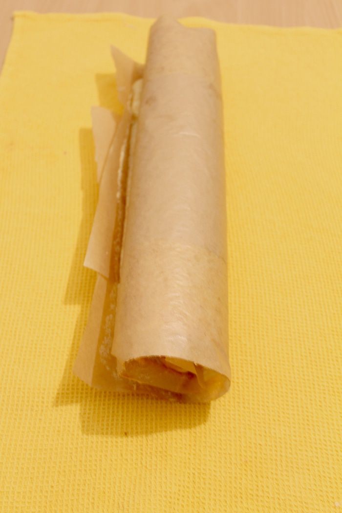 Свернуть горячим, остудить, затем аккуратно развернуть и снять бумагу.