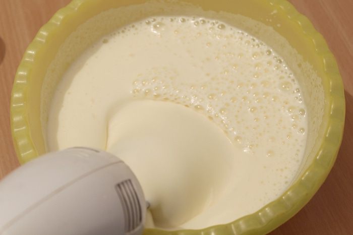 Сверху украсить взбитыми сливками с сахаром.