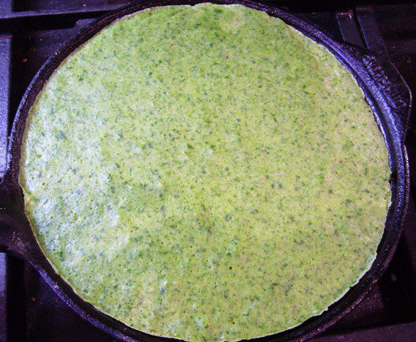 Поэтому блин с одной стороны остается гладким и зеленым.