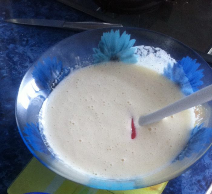 К полученной кефирно-яичной смеси добавляем муку, тщательно перемешиваем, чтобы не осталось никаких комков.