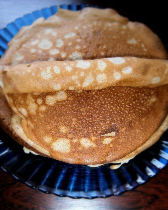 Раскалённую сковороду смазать растительным маслом и испечь тонкие блины.