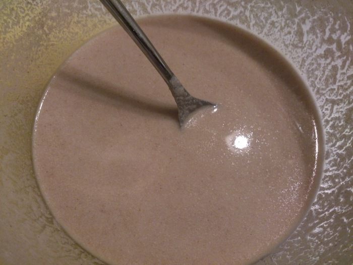 В воду добавить соль и размешать. Всыпать муку, смешивая венчиком. Поставить в холодильник на 24 часа.